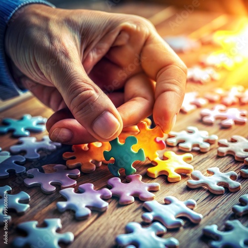 puzzle, piece, hand, assembling, colourful, wood, table, leisure, concentration, activity, enjoyment, engaging, hobby, mind, challenge, casual attire, creative, sharpened, cosy, domestic, game, atmosphere, morning, interaction, fun, assembly, entertainment, relaxation, artistic, process, individual, visual, warm light, concept, pleasure, skill, connection, calmness, dedication