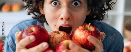 person, expression, horror, fruit, apple, bowl, discovery, rotten, food, surprise, kitchen, interior, still life, healthy, unhealthy, organic, produce, vegetable, snack, diet, lifestyle, cooking, eating, problem, issue, concern, freshness, reveal, find, inspect
