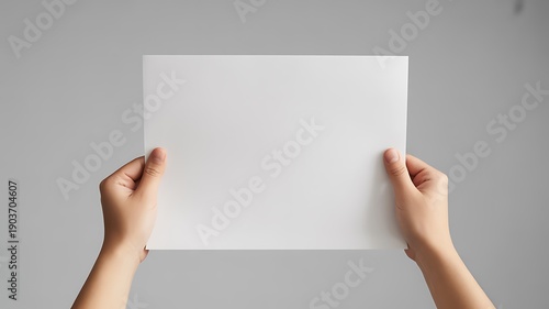 hand, holding, paper, blank, white, background, grey, center, image, plain, neutral, piece, colours, showing, displaying, showcase, presentation, clean, empty, unmarked, sheet, display