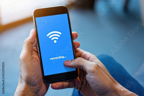 Person holding smartphone with Wi-Fi connection symbol