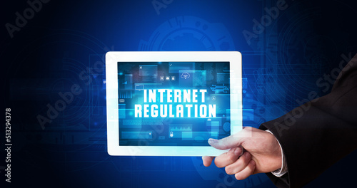 Person holding tablet, security concept