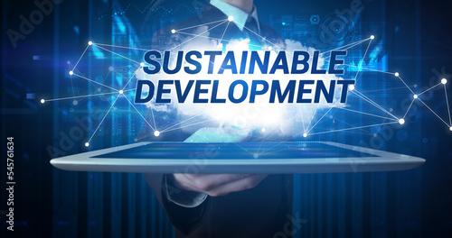 Person holding tablet, technology concept