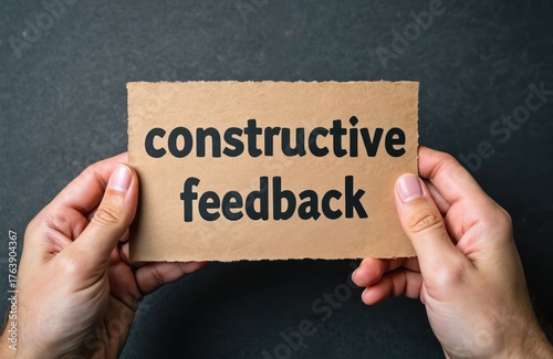 Person holds a paper with text constructive feedback. The concept is about customer response to enhance effectiveness. Idea of business communication support and improvement.