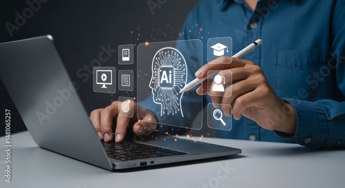 laptop, artificial intelligence, ai, technology, innovation, interface, human, computer, screen, learning, education, research, development, automation, datum, machine, future, modern, business, communication, connectivity, network, online, cyberspace, virtual, reality, cyber, security, digital, device, electronic, portable, work, office, job, task, stylus, hand, finger, user, application, software, icon, graphic, design, concept