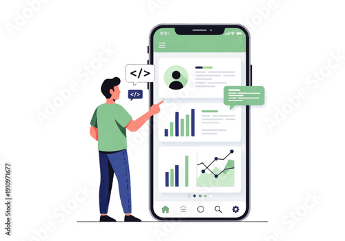vector, technology, illustration, mobile, smartphone, datum, dashboard, chart, graph, statistic, report, business, app, application, user, interface, infographic, presentation, growth, performance, insight, visualisation, monitoring, tracking, analysis, developer, programmer, designer, interaction, touch screen, display, metric, trend, finance, marketing, optimization, statistic, progress, success, goal, strategy, planning, collaboration, teamwork