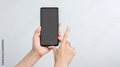 smartphone, hand, blank screen, interaction, technology, device, touch, finger, holding, modern, contraption, communication, digital, display, wireless, portable, electronic, mobile, screen, blank, human, closeup, isolated, white background, minimalist, design, sleek, contemporary, tech, lifestyle