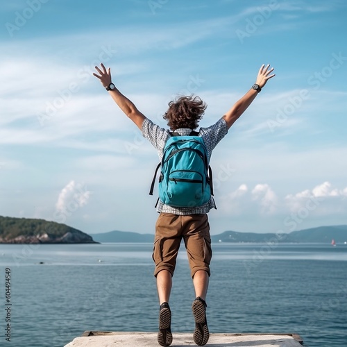 vacation, holiday, summer, man, backpacker, sea, sky, cloud