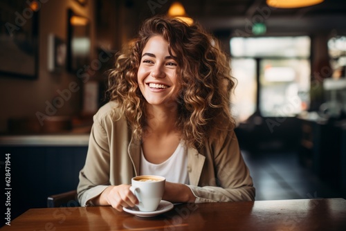 person laugh and simply relaxing while enjoying their coffee. generative ai