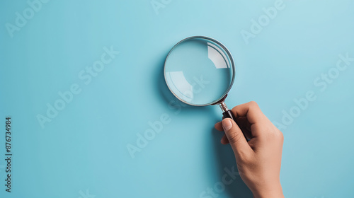 Person magnifying blue surface