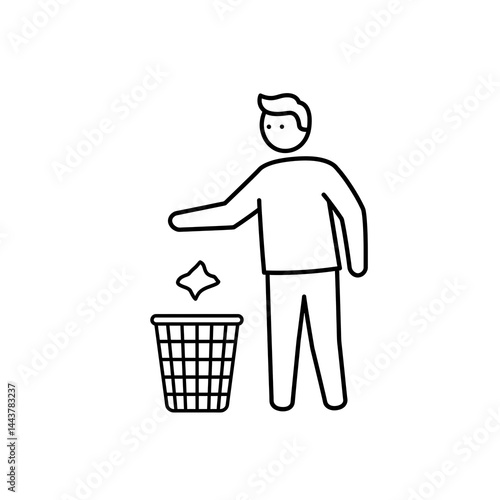 person, throwing, garbage, trash, can, waste, container, paper, disposing, standing, outline, icon, graphic, vector, illustration, design, line, art, drawing, isolated, clip art, symbol, pictogram, cartoon, minimalist, simple, clean, recycling, responsibility, environment, awareness, hygiene, sanitation, management, public, service, black, white, concept, health care