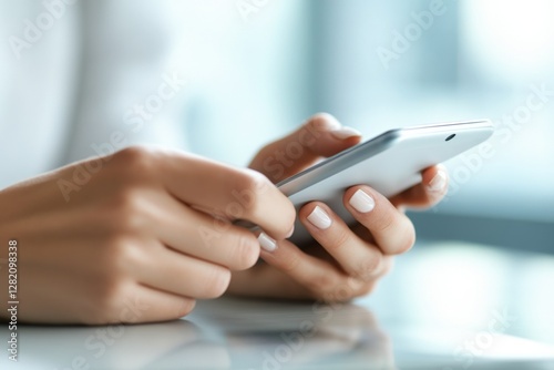 smartphone, hand, person, table, indoor, daytime, technology, communication, casual attire, sharpened, device, activity, interaction, bright, engagement, lifestyle, connectivity, leisure, reading, texting, modern, multitask, digital, concentration, relaxation, work, hobby, white, smooth, nail, soft, contemporary, environment, user, to sit, interior, moment