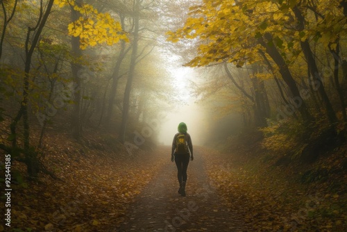 forest, autumn, mist, path, leaf, yellow, orange, tree, nature, walk, hike, foliage, backpack, fall, misty, calm, serene, wood, solitude, trail, fog, explore, peaceful, adventure, scenic, natural, quiet, tranquil, journey, wilderness, landscape, mystic, endurance, inspiration, relaxing, mysterious, exploration, serenity, adventurous