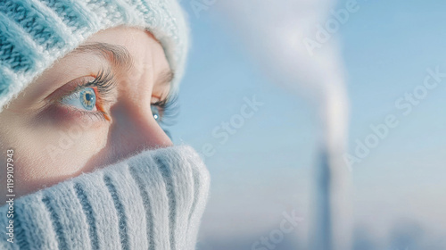 person, eye, blue, hat, foulard, winter, cold, steam, thoughtful, city, closeup, portrait, warmth, expression, landscape, chilly, fashion, cosy, gaze, atmosphere, beauty, skin, texture, emotion, sharpened, scene, nature, environment, lifestyle, urban, weather, frost, serenity, calm, peaceful