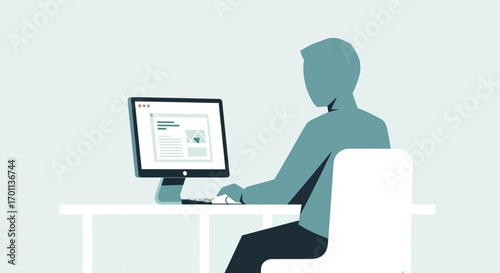 Person Working on Computer Silhouette of an Individual at a Desk with a Monitor and Keyboard