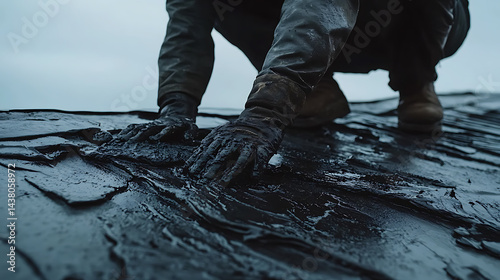 Person Working with Black Tar on a Roof