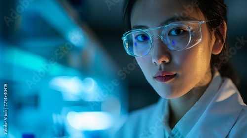 Personalized medicine specialist, medium close-up, analyzing genetic data, high-tech lab, late spring, clinical and focused lighting,generative ai
