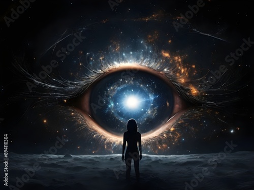 perture through which the universe is looking at and exploring itself, Black out, none exsitance, void , exsitance disappeared into nothingness, nothing but 1 eye Generative AI