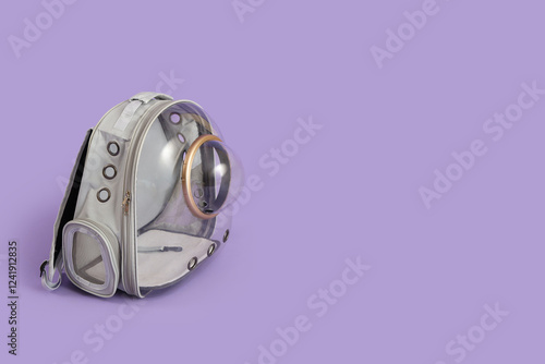 backpack, carrier, lilac, pet, accessory, animal, background, bag, care, carnivore, carry, carrying, cat, colours, container, copy, domestic, empty, felino, cat, mammal, nobody, object, portable, safe, safety, security, space, text, transparent, transport, transportation, transporter, travel, trip, vet, veterinary