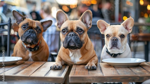 Pet friendly coffee shop concept. Lifestyle and pets concept with a cut dogs in an urban setting. Generative ai