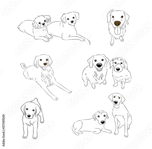 cat, dog, animal, pet, felino, canino, kitten, puppy, doodle, vignetting, line art, outline, minimalist, cartoon, cute, adorable, hand-drawn, illustration, black-and-white, monochrome, simple, vector, drawing, contour, design, silhouette, playful, charming, whisker, furry, domestic, sitting, standing, walking, tail, paw, friendly, happy, bundle, set, collection