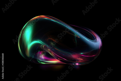 Petrol abstract shape, glow loop, soft light, minimalist, holographic, black background .Generative AI