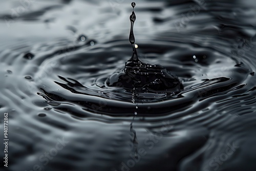 Petroleum Splash: Crude Oil Dripped on Smooth Shiny Black Surface