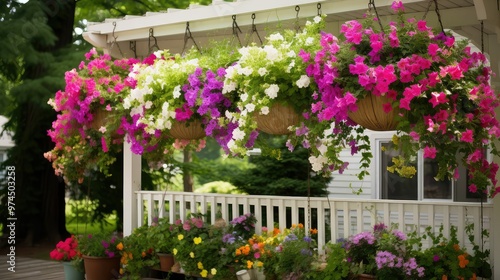 petunia, potted, plant, illustration, garden, ivy, basket, hanging, pergola, backyard, whimsical, display, colourful, trailing, flower, greenery, charming, picturesque, scene, nature, decor, vibrant, lush, foliage, bloom, arrangement, suspended, container, horticulture, landscape
