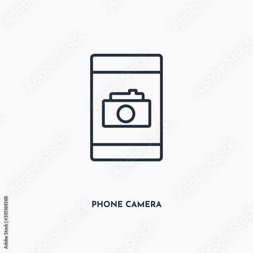 Phone camera outline icon. Simple linear element illustration. Isolated line Phone camera icon on white background. Thin stroke sign can be used for web, mobile and UI.