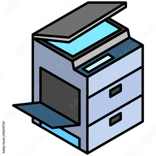 icon, icon, isometric, three-dimensional, copying, device, technology, electronic, contraption, document, paper, copier, file, office, cabinet, drawer, business, organisation, illustration