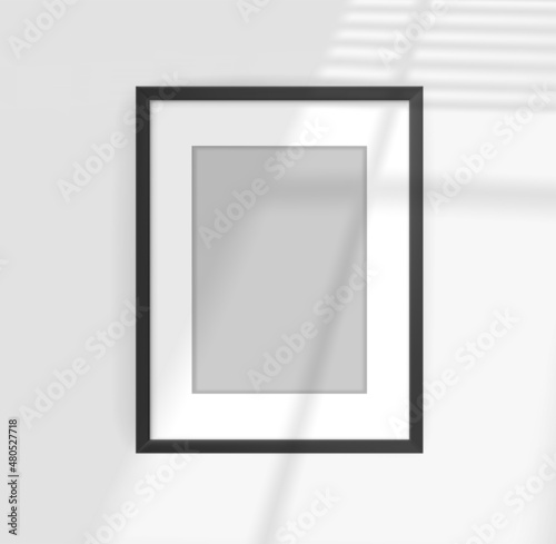 Photo frame mockup with sun flare effect. Light of the window with blinds