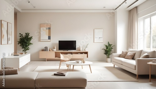 apartment, comfortable, decor, furniture, hall, home, interior, modern, pillow, render, room, sofa, wall, living, living room, three-dimensional, blue, beige, rug, pattern, pouf, bookcase, telescope, poster, vintage, rattan, indoor