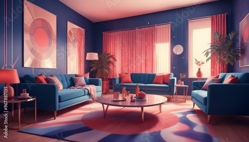 Photo interior modern design room 3d illustration;