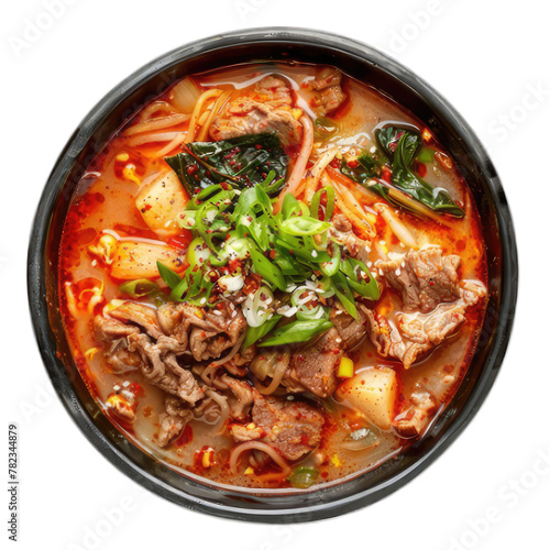 photo of asian food, original multi-ingredient soup with spicy pork, kimchi tige, isolated on transparent background.