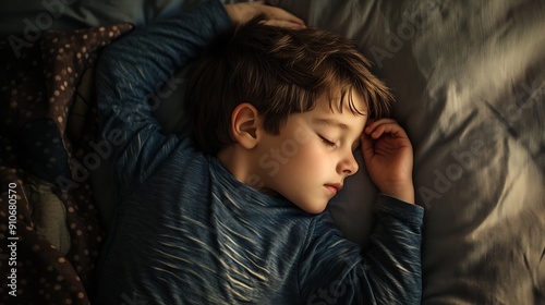 Photo of Boy sleeping in bed : Generative AI