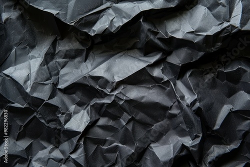 Photo of Crumpled sheet of black paper. Background texture for backdrops or mapping