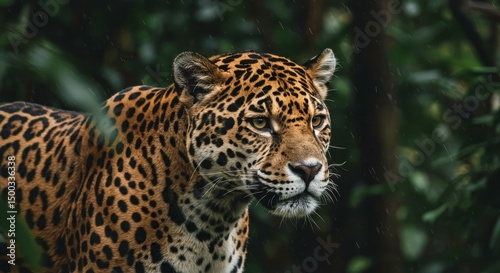 Photo of Jaguar in Rainforest with Orange Fur and Spotted Pattern