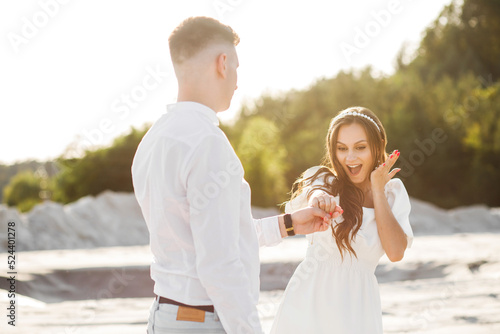 beach, beautiful, boyfriend, bride, canyon, concept, couple, day, desert, diamond, emotion, female, girl, girlfriend, hand, happiness, happy, holding, hug, jump, love, male, man, marriage, married, to marry, nature, pair, present, proposal, propose, human relationships, ring, romantic, run, said, sand, she, summer, surprise, tenderness, together, 2, vacation, valentine, walk, wedding, wife, woman