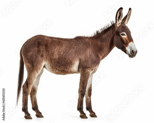 isolated, white, white background, transportation, domesticated, hybrid, saddle, pack animal, mule, bridle, desert, tail, hoof, backcountry, frontier, cross country, equine, farm animal, mane, hard-working, ranch, western riding, agriculture, farm animal, grazing, ear, sturdy, endurance, animal husbandry, generative, ai, standing, portrait, wild, mammal, donkey
