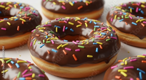 Photo Of Realistic Donuts With Chocolate Glaze And Colorful Sprinkles