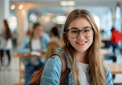 Photo of young beautiful smiling student , college woman girl