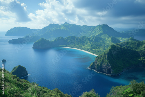 Photo réaliste d’un archipel d’îles verdoyantes et plages de sable blanc