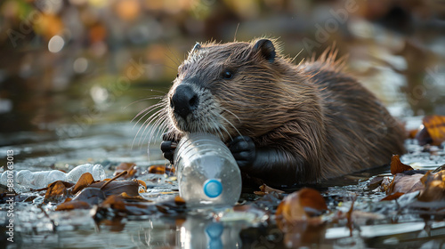 photo where beavers survive among garbage, environmental problems