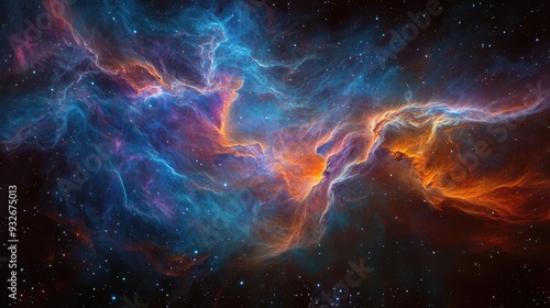 Photograph of a deep space nebula with subtle, nebulous traces and flowing, colorful energy fields.