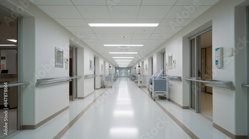 hospital, interior, building, corridor, perspective, empty, clean