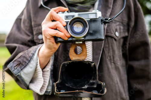 vintage, camera, photographer, photo, outdoors, retro, old, woman, holding, nature, style, fashion, classic, analog, film, equipment, lens, photo, picture, hipster, nostalgia, past, history, antique, memory, capture, moment, art, creative, passion, hobby, lifestyle, travel, explore, adventure, journey, document, record, view, scene, landscape, portrait, sharpened, composition, shutter, aperture, exposure, technology, design