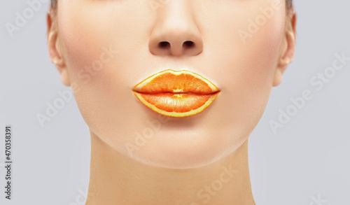 Photography collage.Watermelon lips,lemon lips, orange lips, fruity lips.