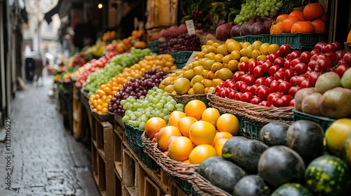 photo, vibrant, fruit, market, stall, overflowing, fresh, produce, food, vegetable, vegetable, fruit, healthy, apple, green, organic, racked, tomatoes, red, store, colourful, orange, barcelona, grocery, agriculture, natural, diet, shop