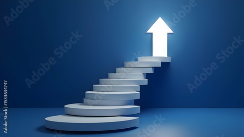 Photorealistic 3D Crystalline White Arrow Ascending Geometric Spiral on Midnight Blue Environment