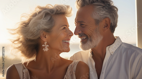 Photorealistic Representation of a Beautiful and In-Love Couple in Their 50s, Radiating Mid-Age Elegance