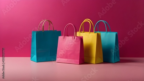 Photorealistic Shopping Bags Displayed Against Bold HotPink Backdrop for Fashion Retail Themes